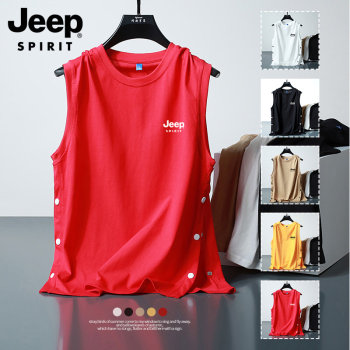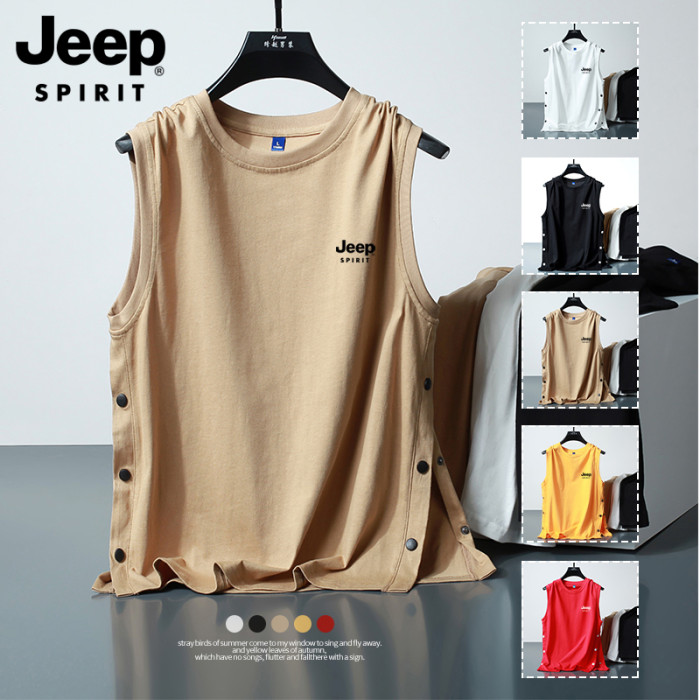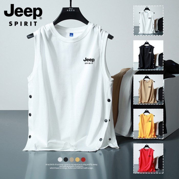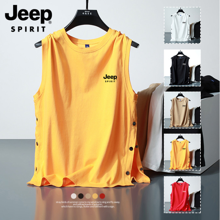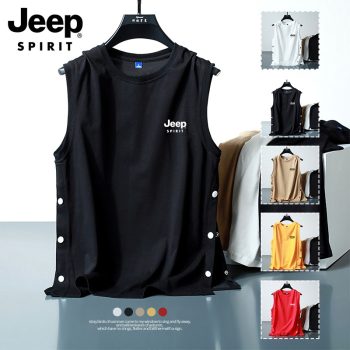 JEEP吉普排釦背心男士夏季潮流籃球服寬松帥氣坎肩純棉無袖T恤