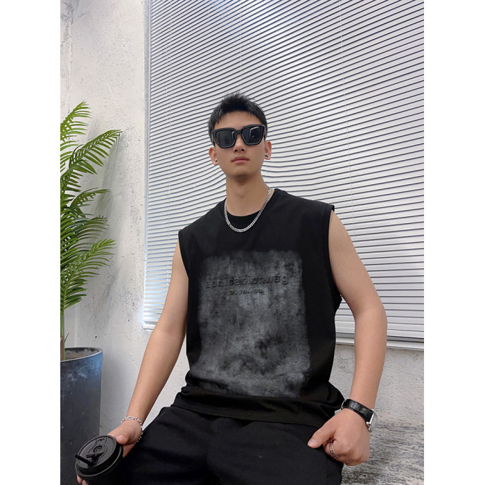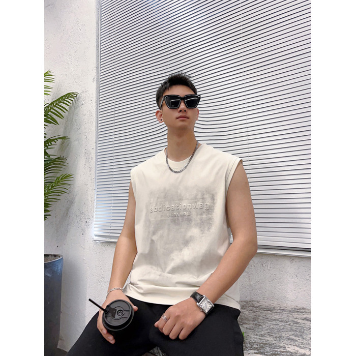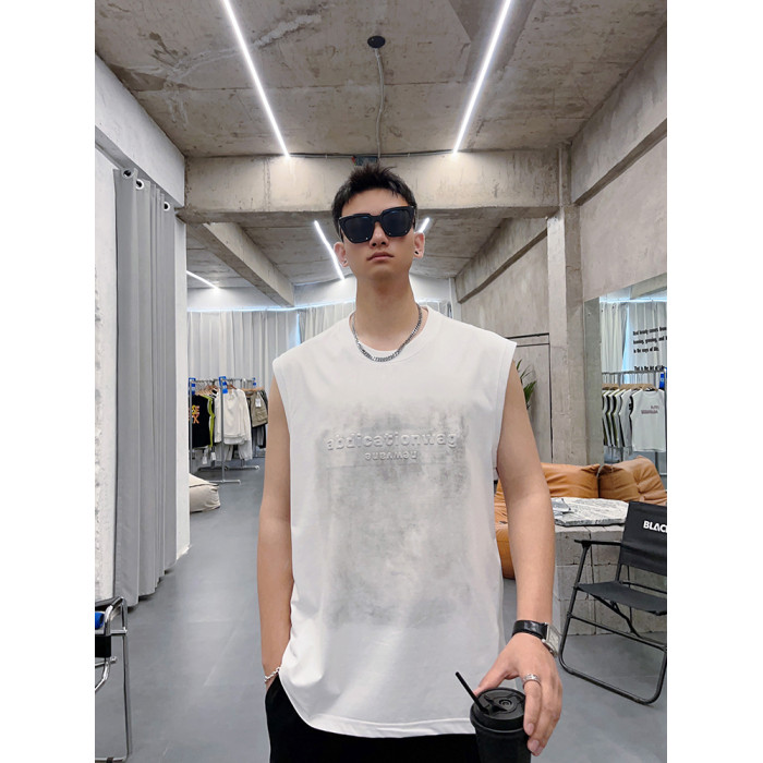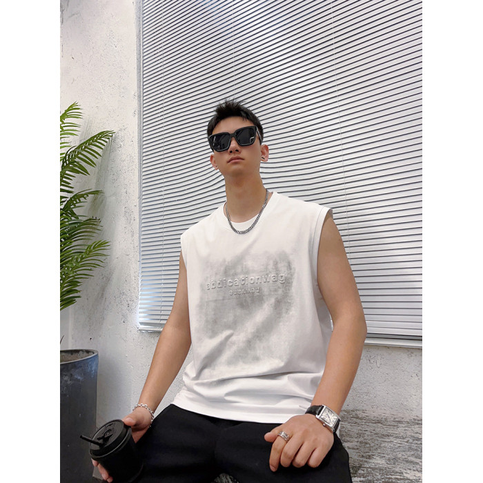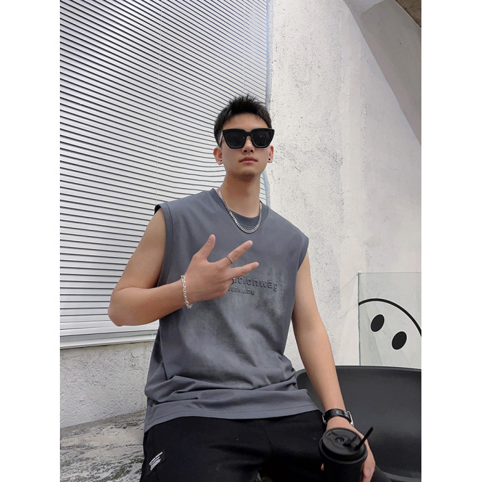 潮牌砍袖T恤衫男流行字母印花無袖上衣青年夏季新款日常通勤背心