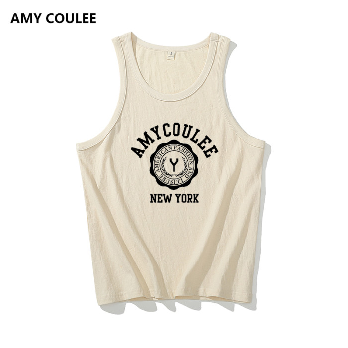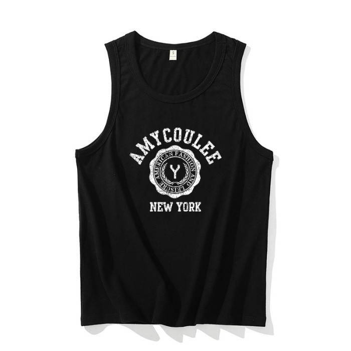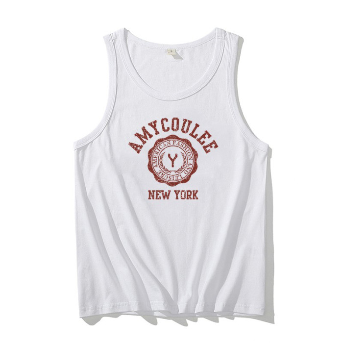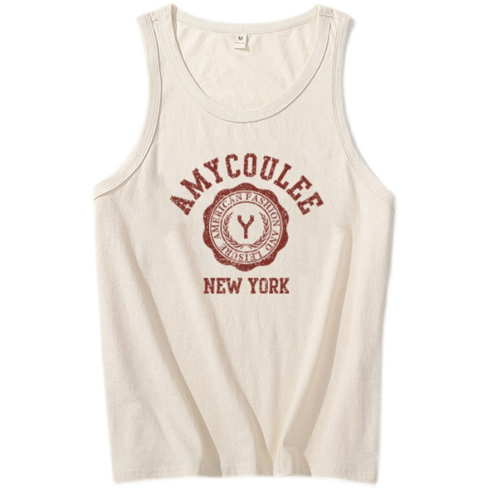 夏季大碼背心男復古印花純棉男士背心寬松青年白色運動汗衫男女款