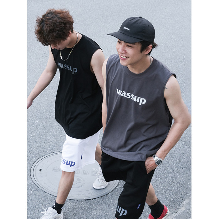 WASSUP潮牌2025新款純棉字母上衣運動健身籃球無袖背心男女款夏季