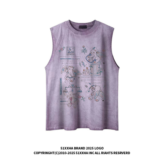 51嘻哈vintage美式復古兔子印花無袖T恤男款夏季寬松健身坎肩背心