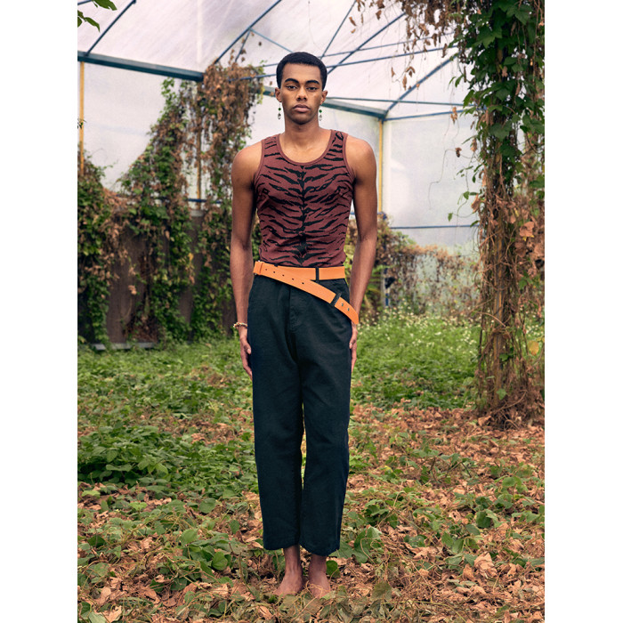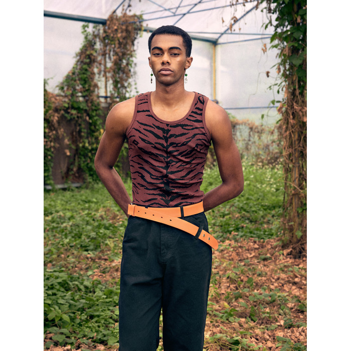 OUYANG WENJUN*虎紋印花羅紋彈力背心