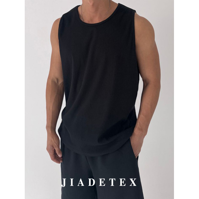 白色竪條螺紋*嘉德JIADE*寬松背心男夏季休閒彈力美式圓領無袖