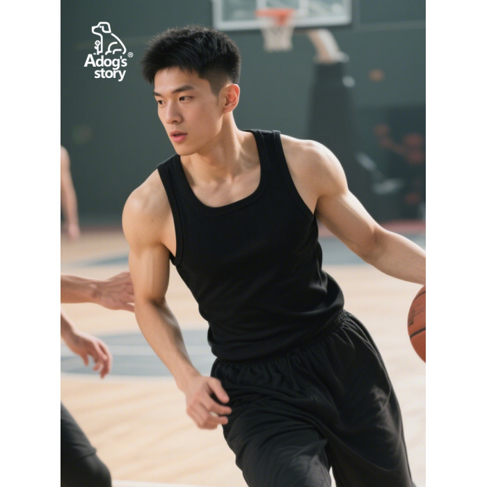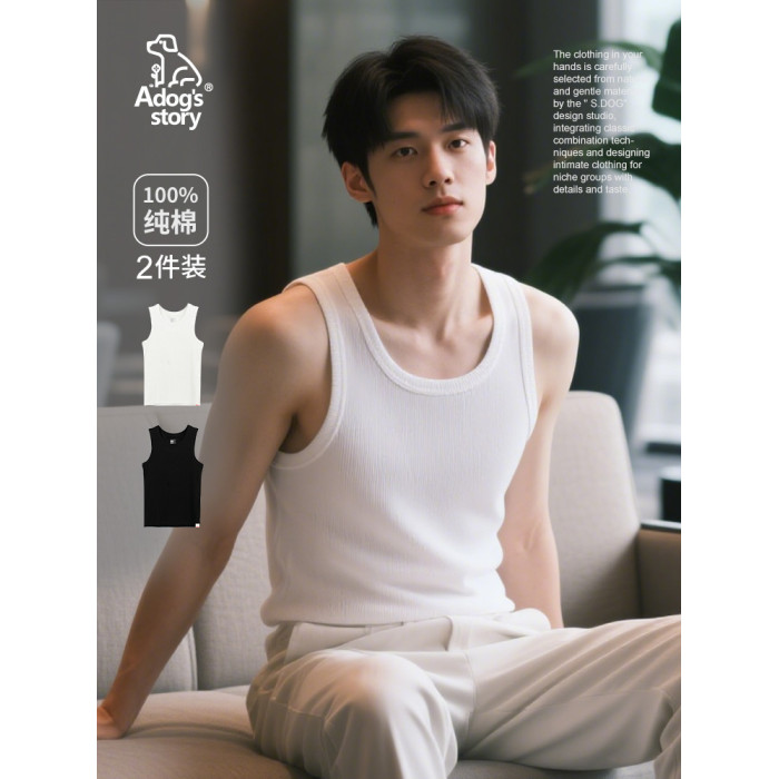 純棉工字白色背心男士修身打底粗螺紋重磅不變形家居無痕針織內搭