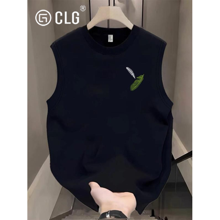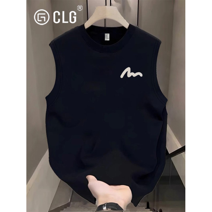 香港CLG潮牌重磅純棉背心男坎肩夏季寬松圓領無袖t恤潮流運動汗衫