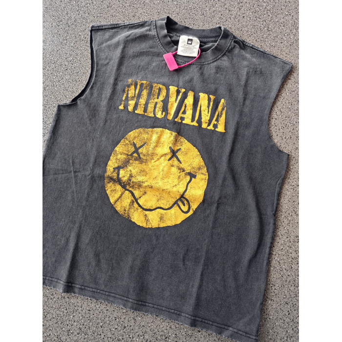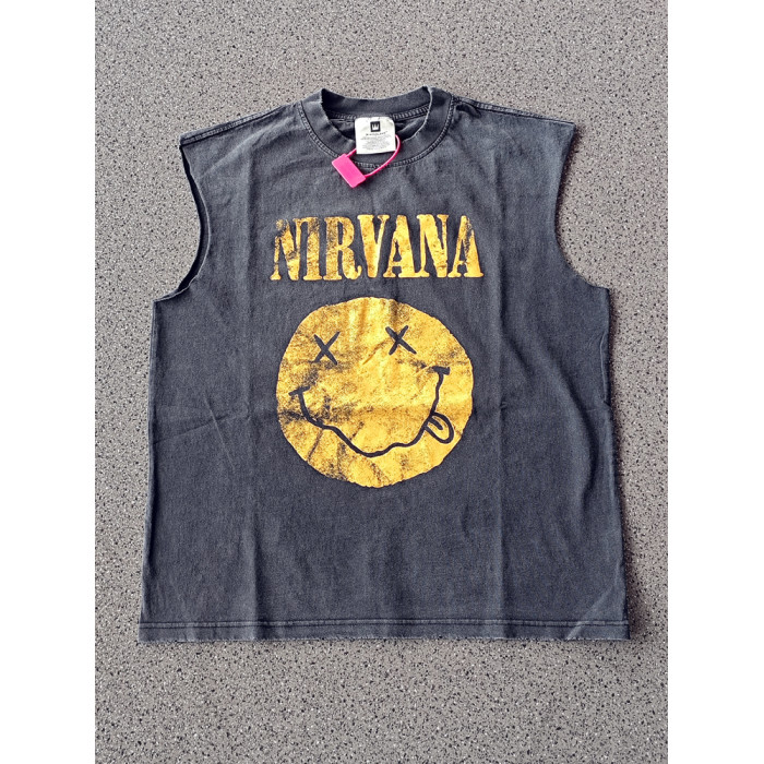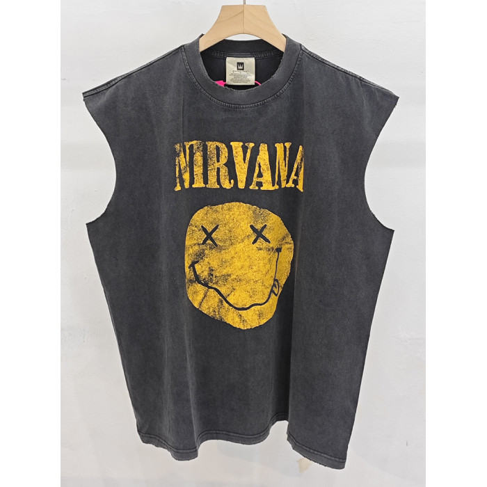 Saint破壞笑臉美式高街vintage水洗復古做舊寬松VTG背心無袖T恤男