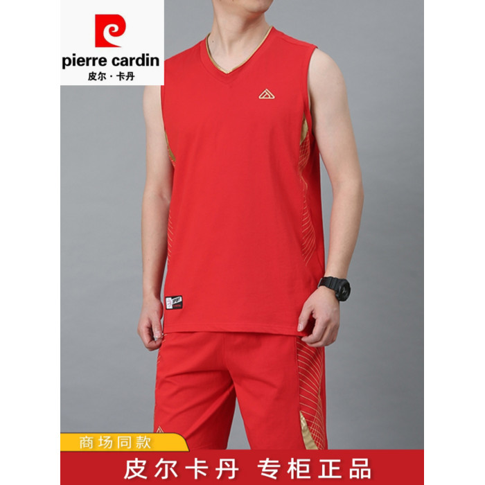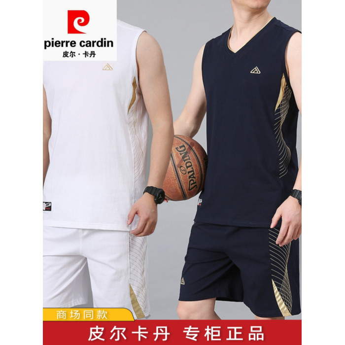 皮爾卡丹純棉運動服套裝男士夏季休閒跑步健身背心短褲球衣籃球服
