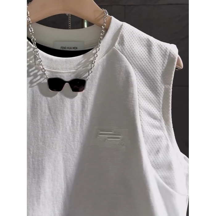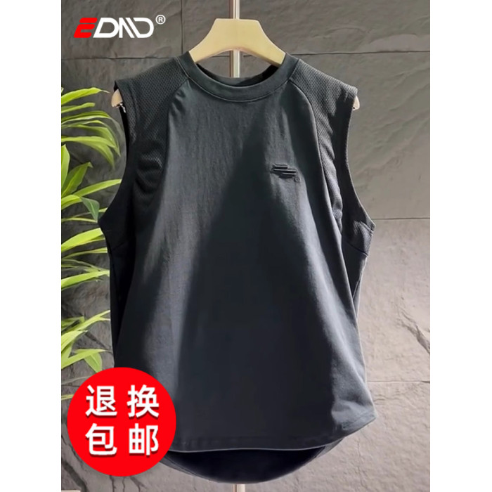 高級潮牌無袖T恤男士2025夏季新款休閒運動美式透氣坎肩背心男款