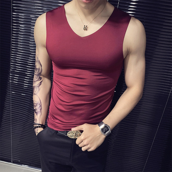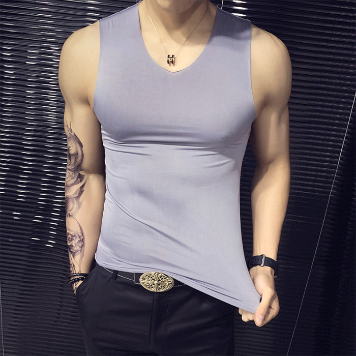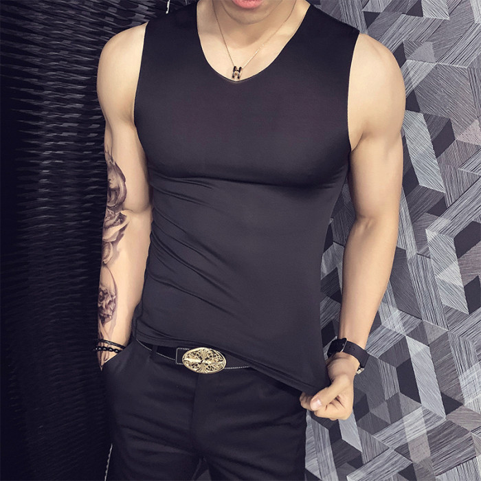 韓版誇帶二道背心男ins潮牌冰絲兩根筋外穿跨欄二股勁坎肩上衣服