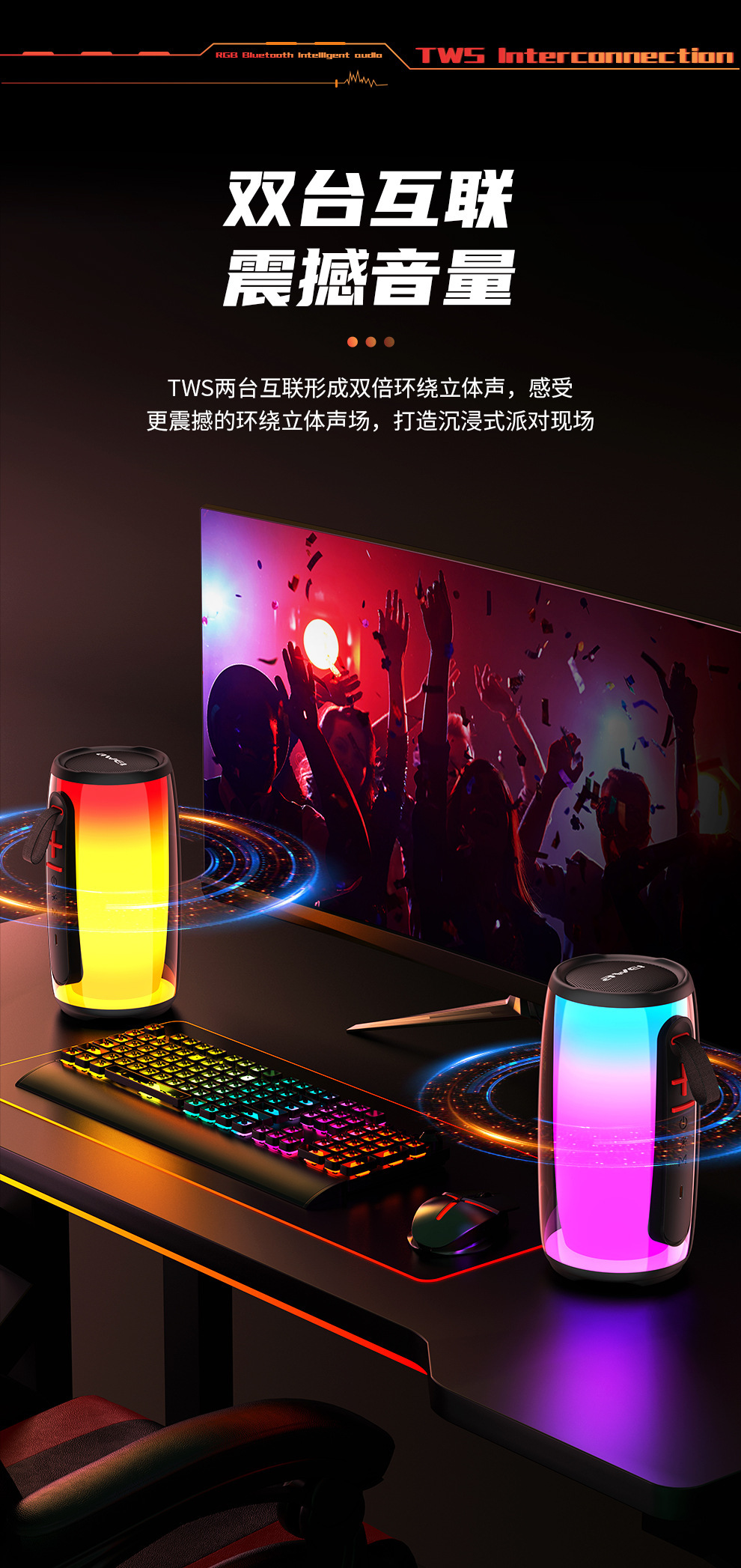 awei用維新品藍牙音箱 幻彩燈效超長續航串聯立體聲藍牙音響