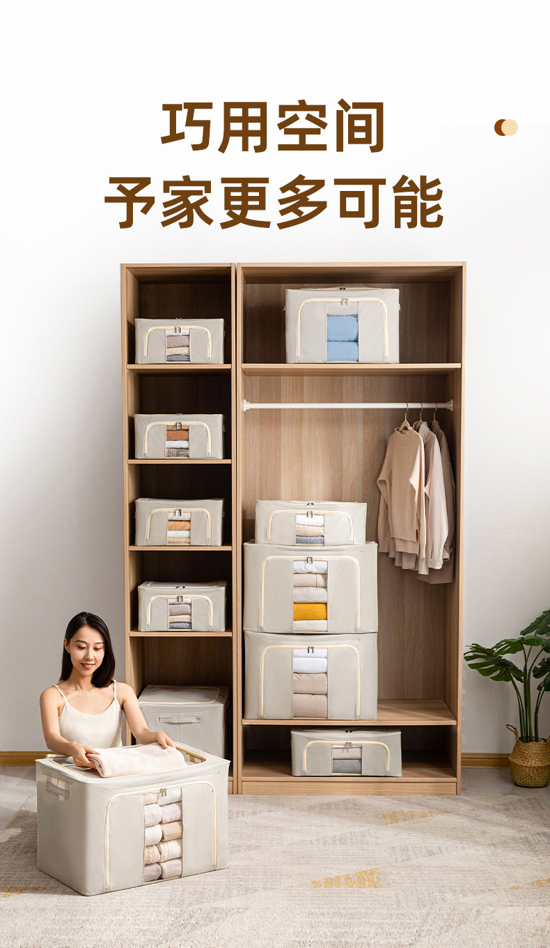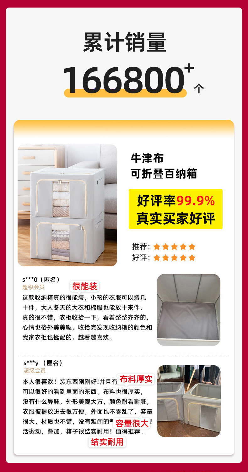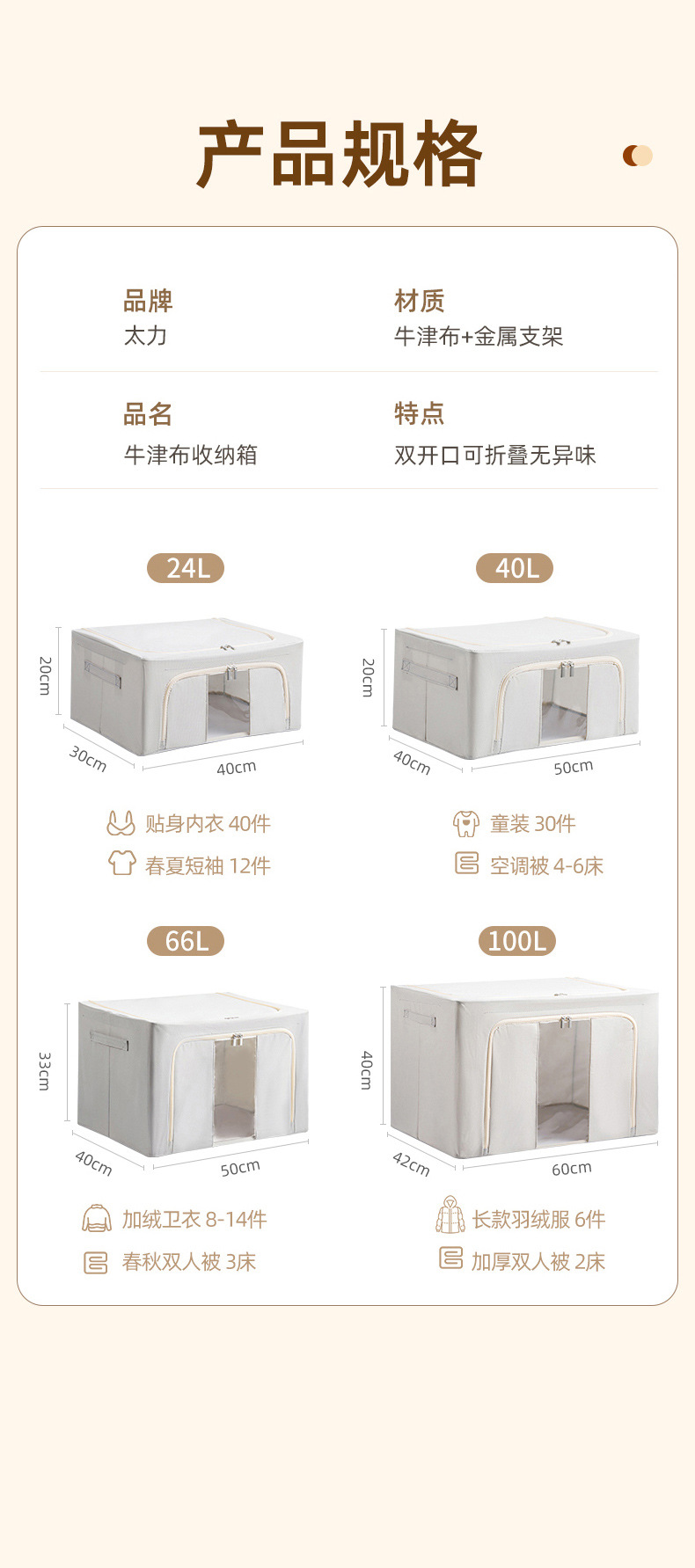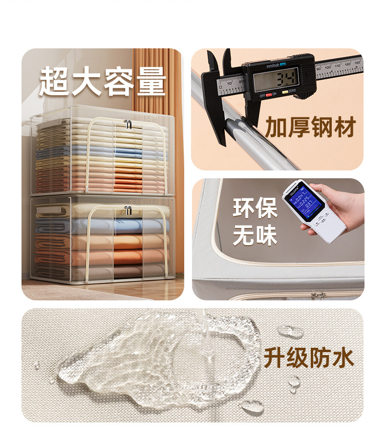 牛津布收納箱材質:優質牛津布+內置加粗鍍鋅金屬支架+底部木板(密度板)。