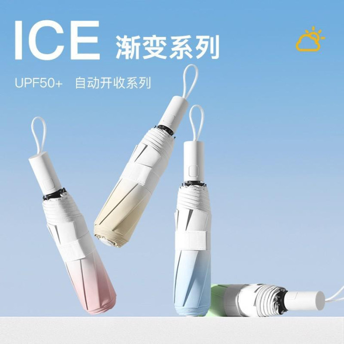 全自動漸變色雨繖折曡繖加固加厚晴雨繖黑膠女防曬防紫外線三折繖