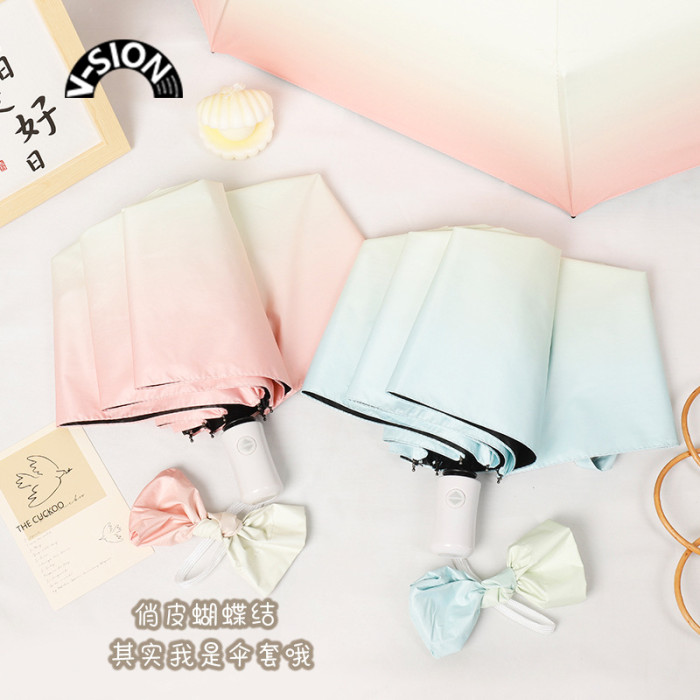 唯鑫蝴蝶結漸變色雨繖晴雨兩用全自動遮陽繖防曬紫外線