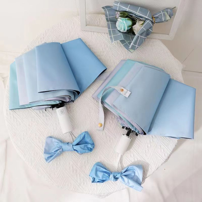黑膠折曡新品女晴雨雨繖ins兩用小衆冰藍漸變色雨繖自動遮陽