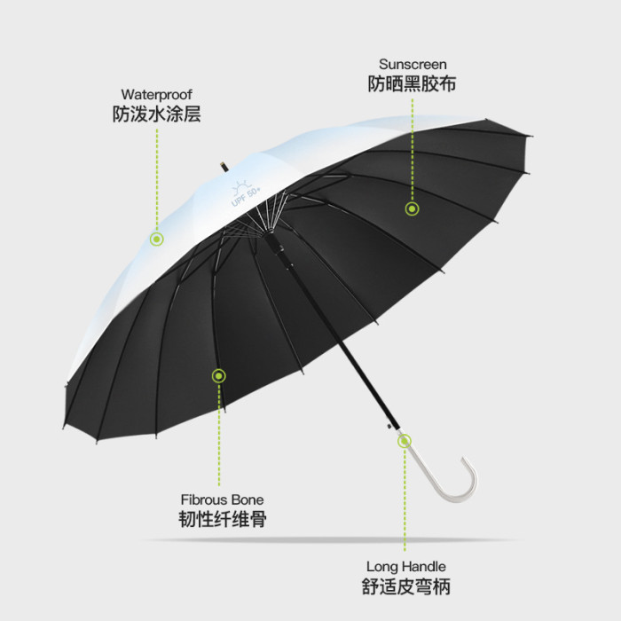 16骨直杆繖ly黑膠面料漸變色天藍