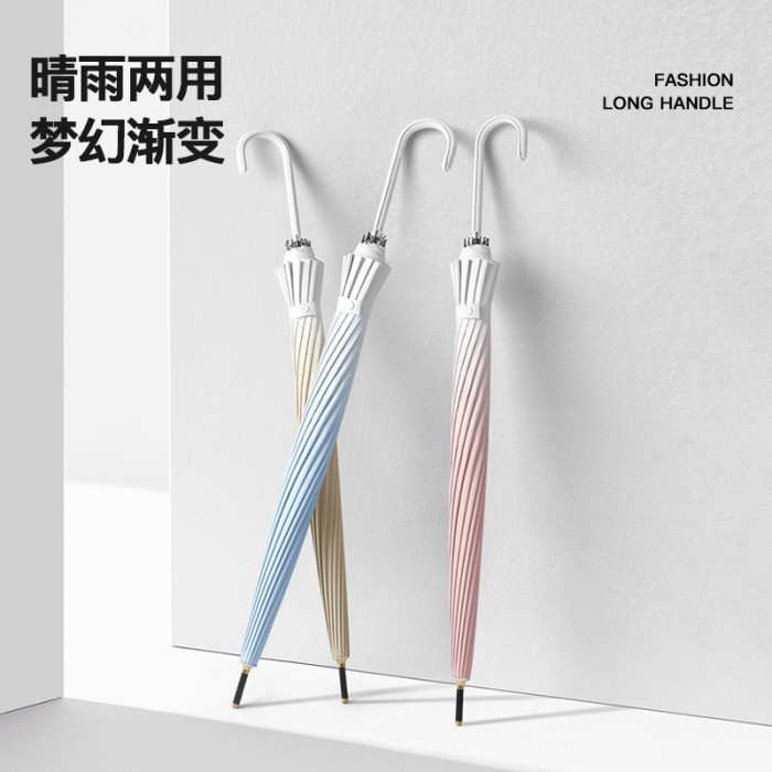 16骨直杆繖ly黑膠面料漸變色仲夏粉