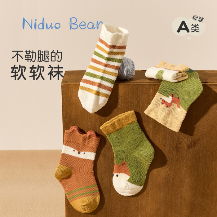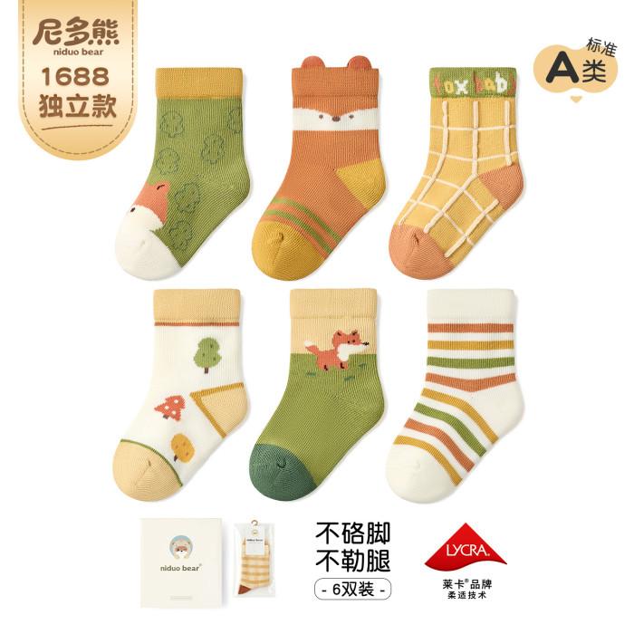 尼多熊2025春季棉襪可愛卡通寶寶襪子男寶無骨不勒六雙裝獨立款