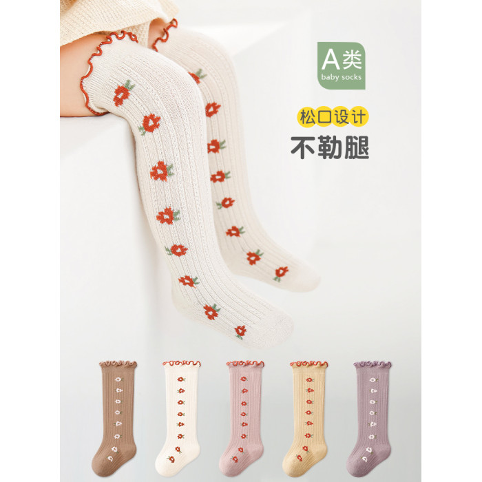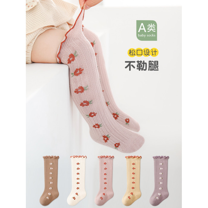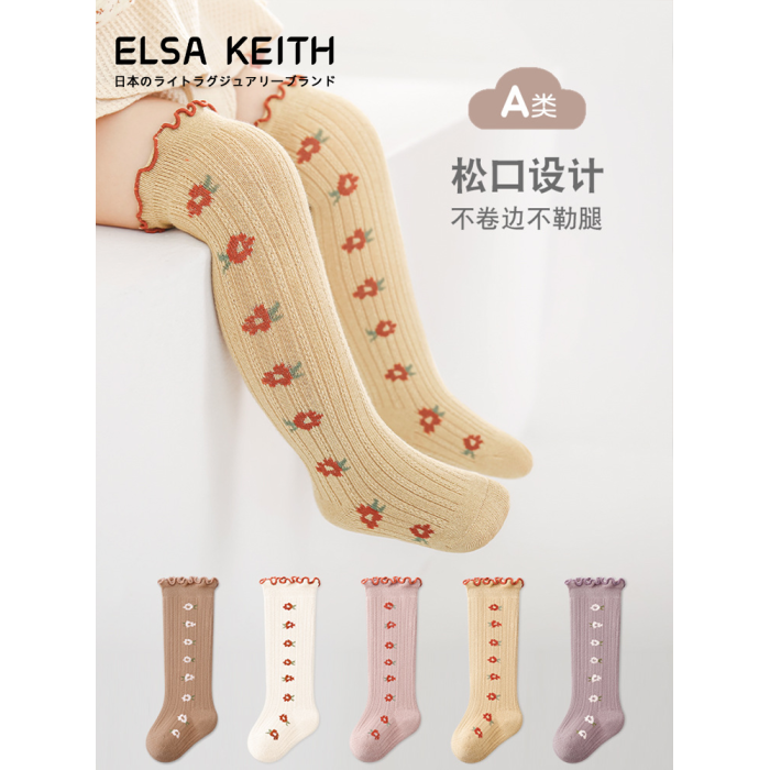 日本ELSA KEITH嬰兒秋季襪子寬口不勒腳寶寶襪子木耳花邊長筒襪