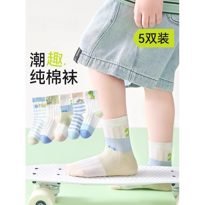 IuIunrsen寶寶襪子夏季薄款純棉透氣短筒襪小男孩中筒無骨網眼襪
