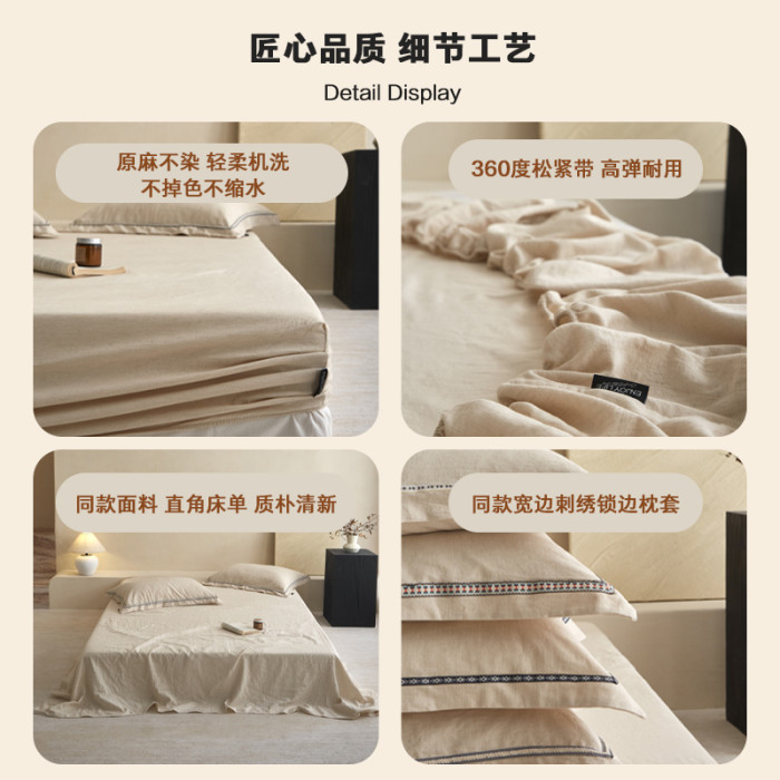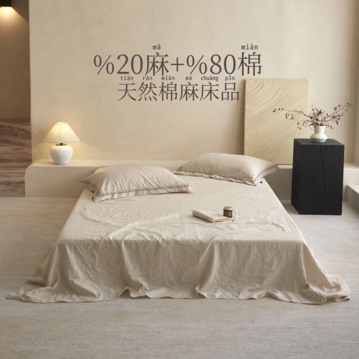 A類母嬰級高級棉麻床單單件全棉純棉親膚透氣紗布亞麻床笠三件套4