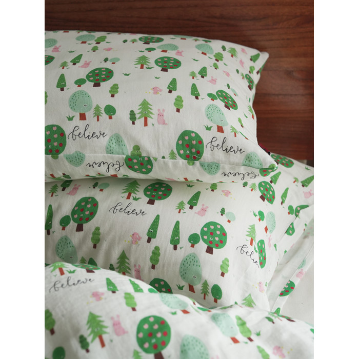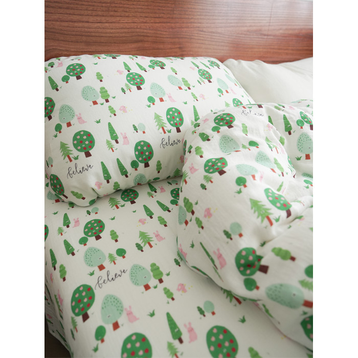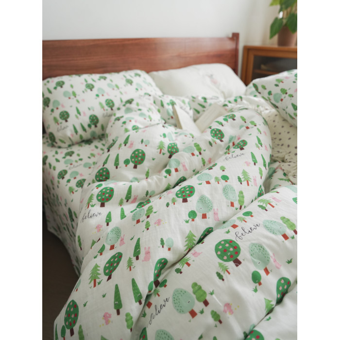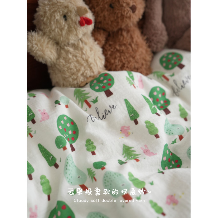 兔兔綠森林 高密純棉雙層紗床單被套床笠枕套單人宿舍學生A類床品