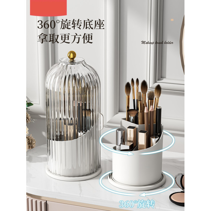 旋轉化妝刷收納筒防塵分格桌面梳妝台透明化妝品口紅眉筆置物架子