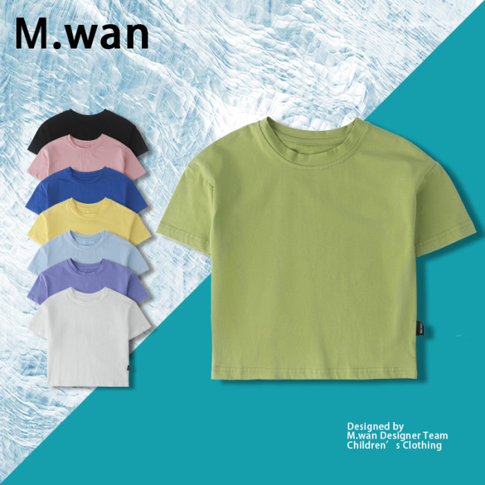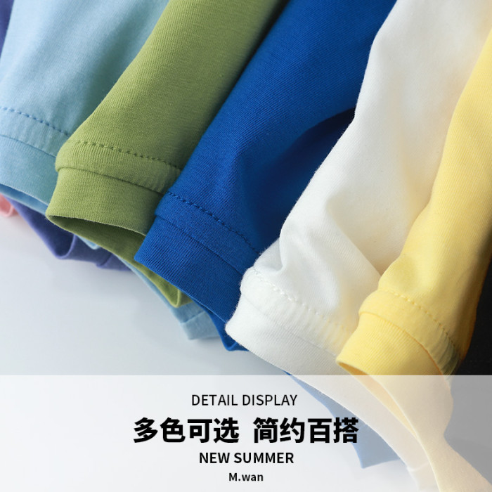 兒童純棉t恤寶寶冰瓷棉純色短袖一家四口夏裝爸爸媽媽親子裝上衣