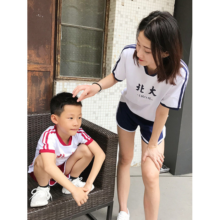 清華北大大學純棉T恤親子裝短袖夏裝一家三四口母子母女兒童套裝