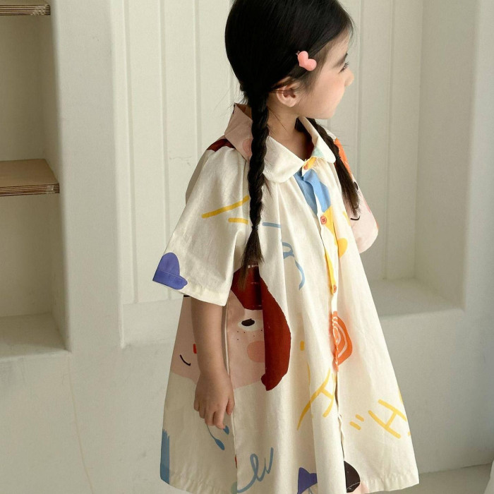 兄妹裝兒童夏季純棉襯衫套裝男女童親子裝韓版洋氣海邊度假襯衫裙
