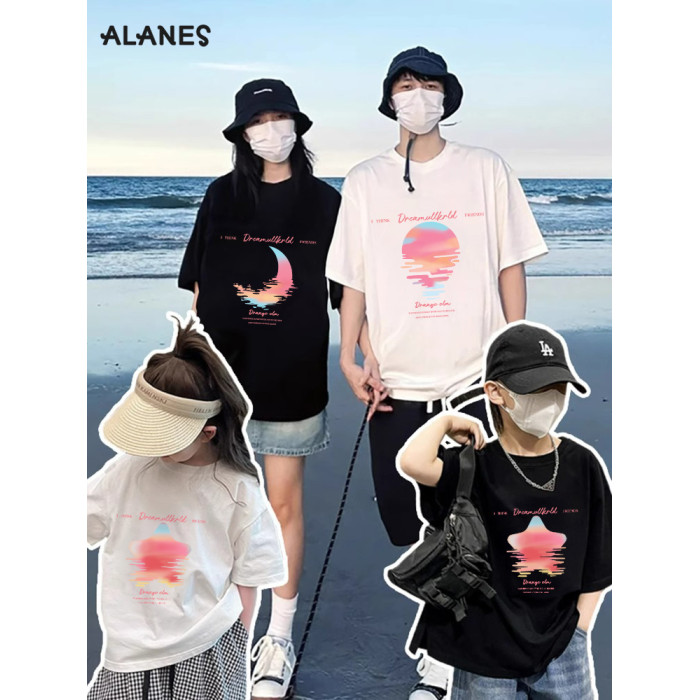 不一樣親子裝T恤夏季一家三口母子裝2025新款網紅母女款短袖上衣t