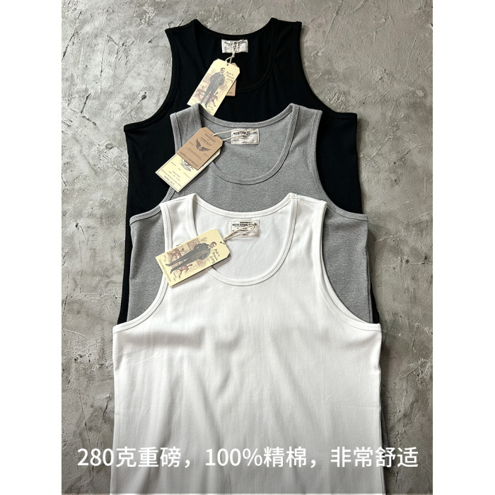美式280G重磅純棉運動背心無袖坎肩彈性訓練打底男純白灰黑老漢衫