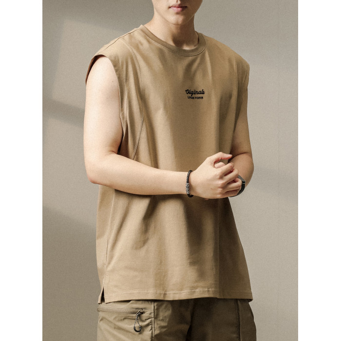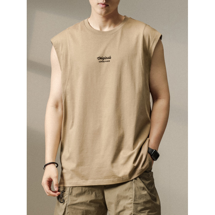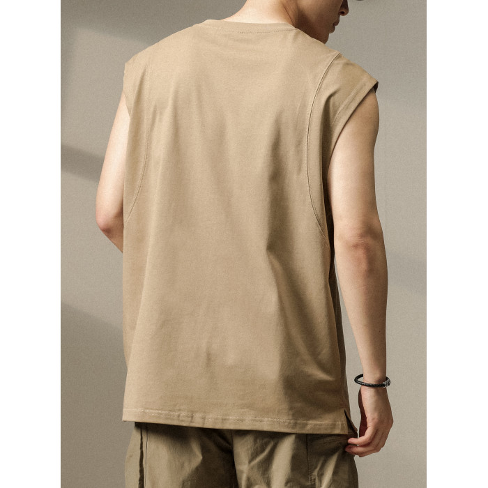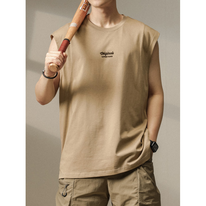 美式重磅健身背心男夏季新款純棉大碼無袖T恤寬松運動坎肩休閒t恤