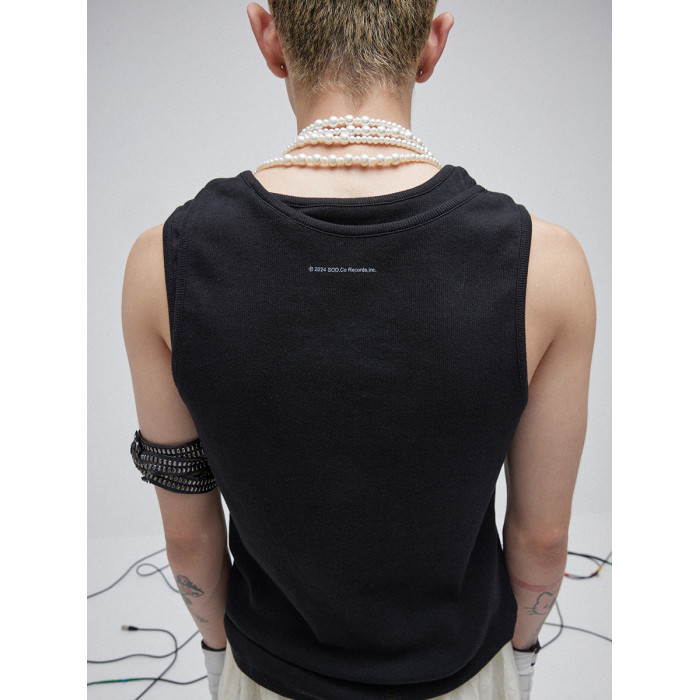 SOD Co. 假兩件背心 黑色 羅紋合身內搭親膚無袖坎肩基礎打底