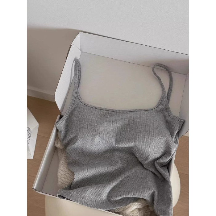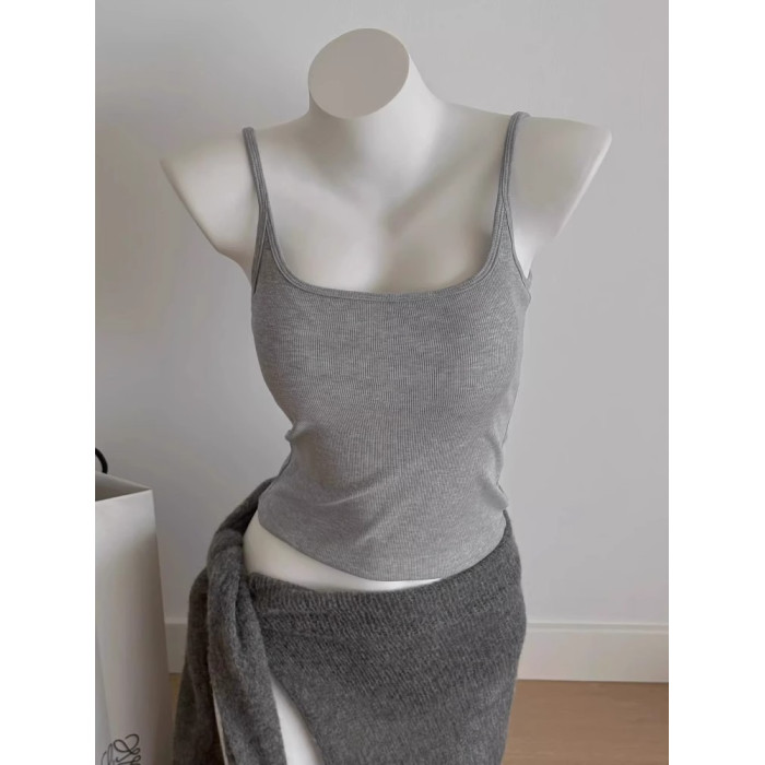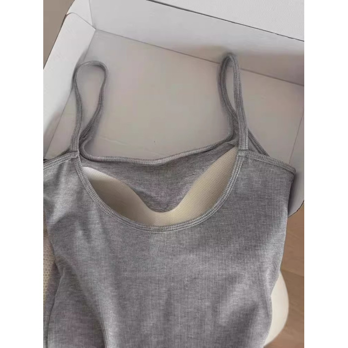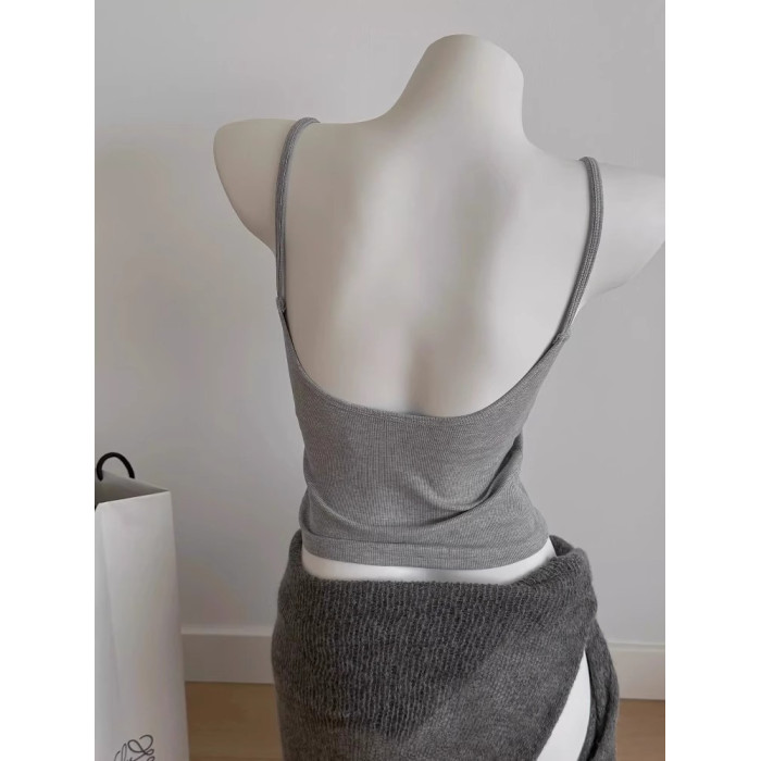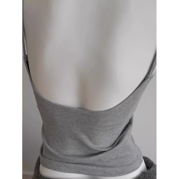 一慄莎子~灰色大露背美背文胸一體背心女夏設計感顯瘦內搭超撩人