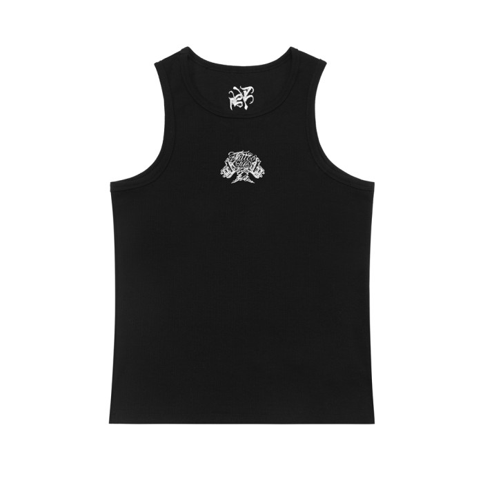 美版重磅刺綉高彈2*2螺紋380克打底緊身背心健身TATTOO花體奇卡諾