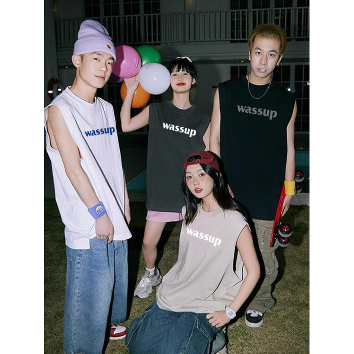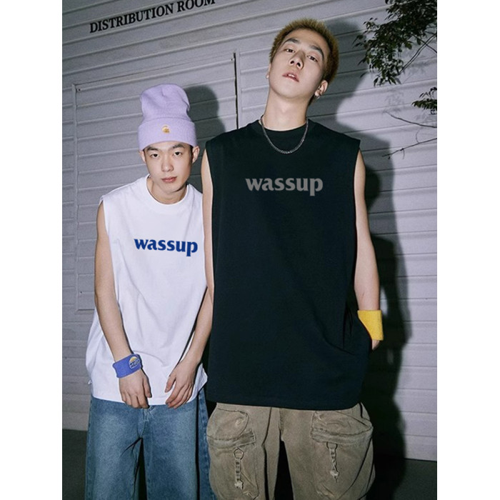 WASSUP美式運動健身無袖背心男潮牌夏季新款坎肩T恤籃球情侶上衣