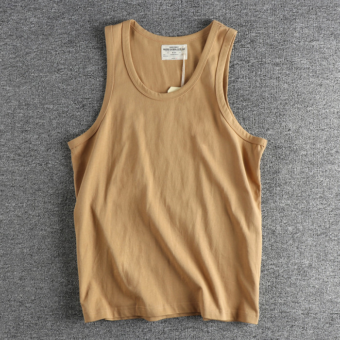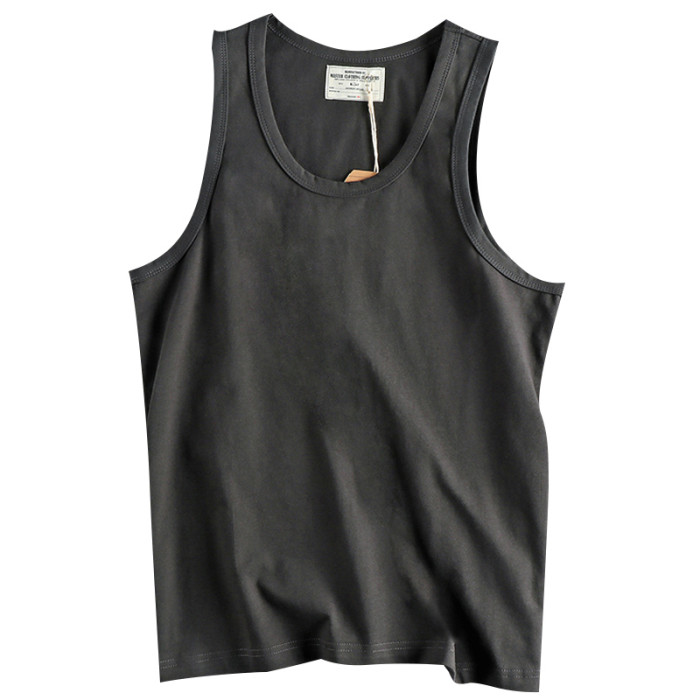阿美哢嘰復古230g重磅純棉背心男水洗無袖汗衫運動健身寬松坎肩T