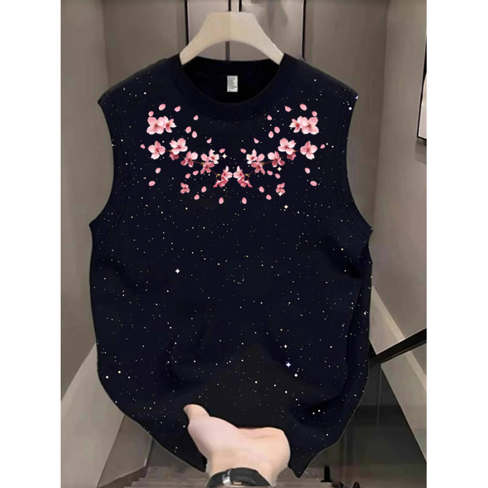 美式復古背心男女夏季潮牌無袖t恤滿天星寬松坎肩純棉黑色上衣