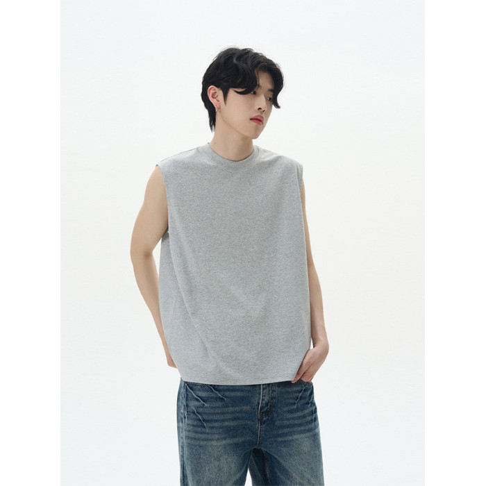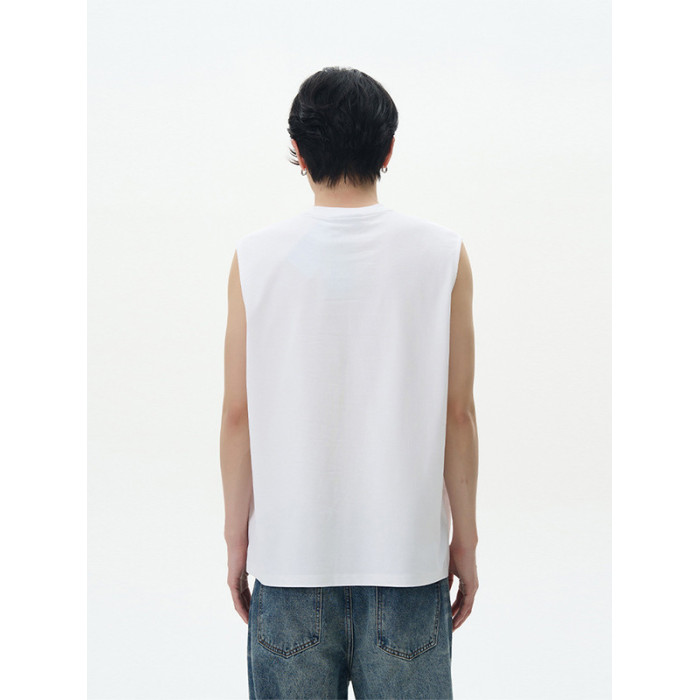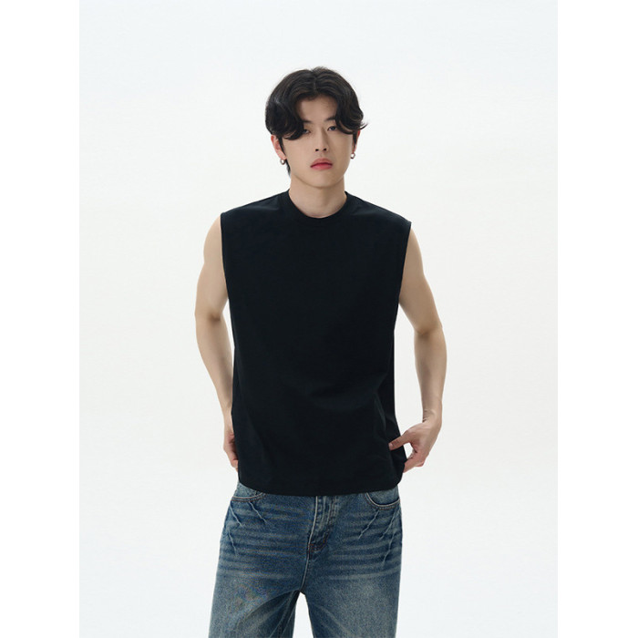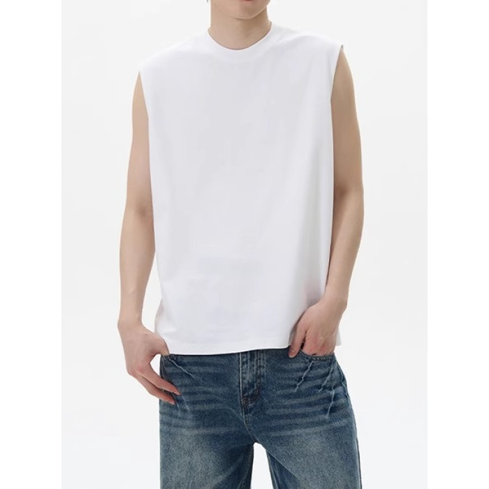 夏季男士潮牌索羅娜小領口無袖坎肩背心男女情侶運動百搭打底T恤