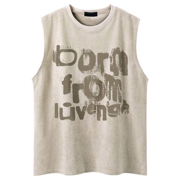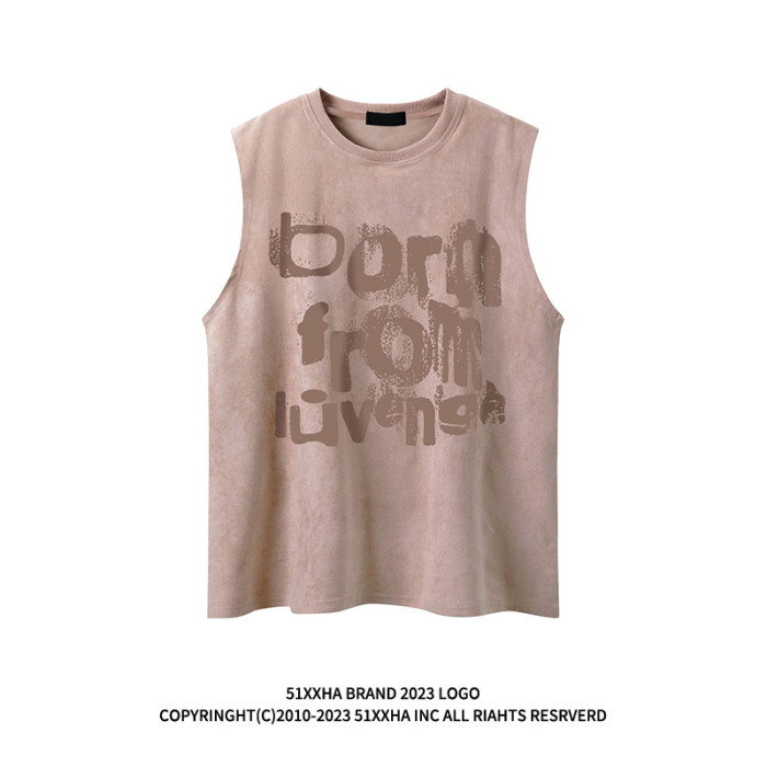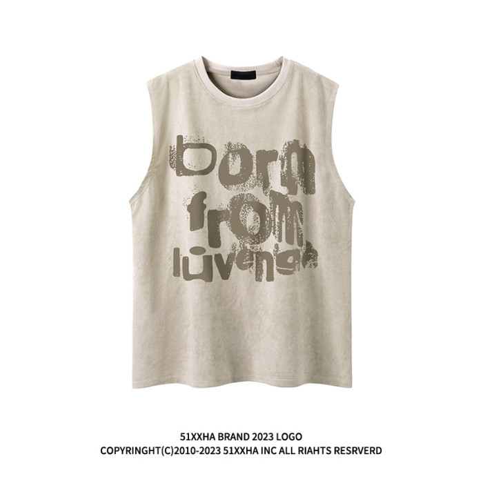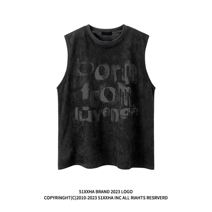 51嘻哈古著vintage字母印花運動健身背心男款夏季復古痞帥無袖T恤