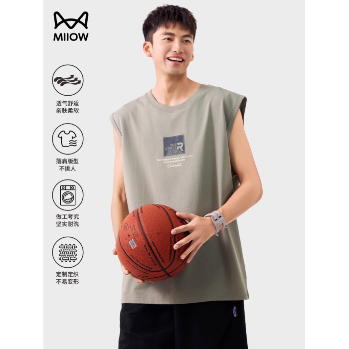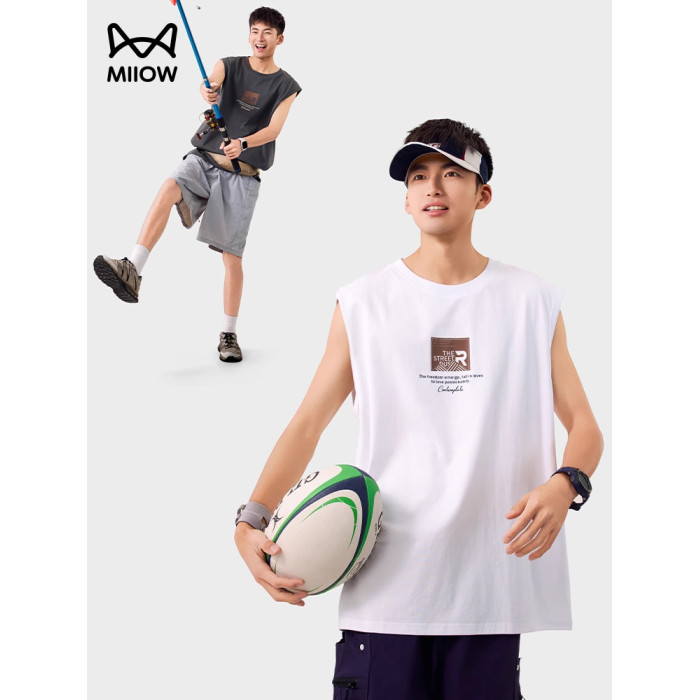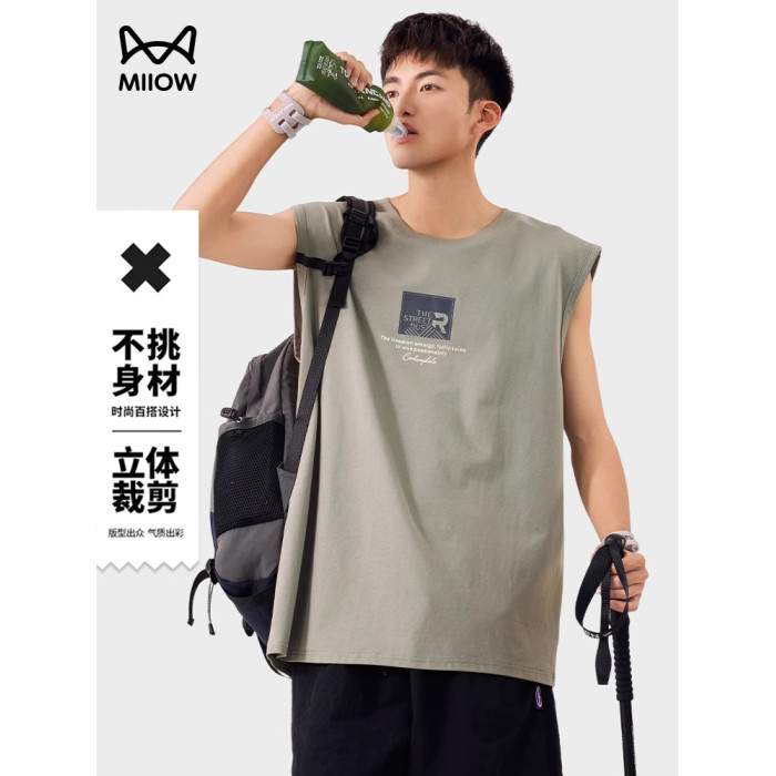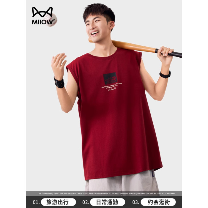 貓人美式印花背心坎肩男士夏季運動健身寬松無袖T恤圓領涼感戶外