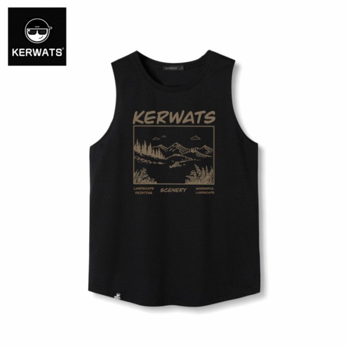 KERWATS青年歐美風森林圖案印花潮牌夏季無袖t恤新款男裝圓領背心