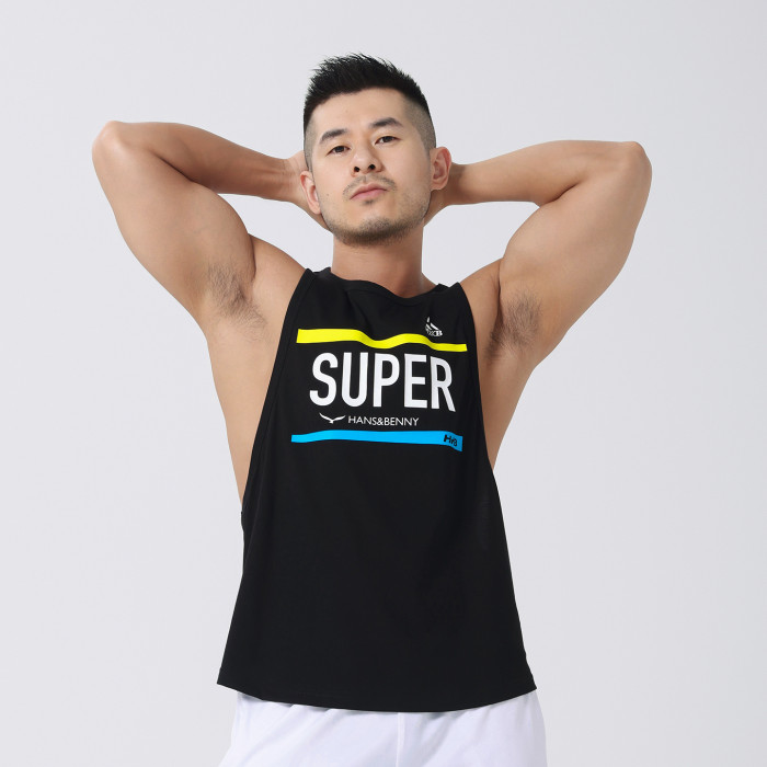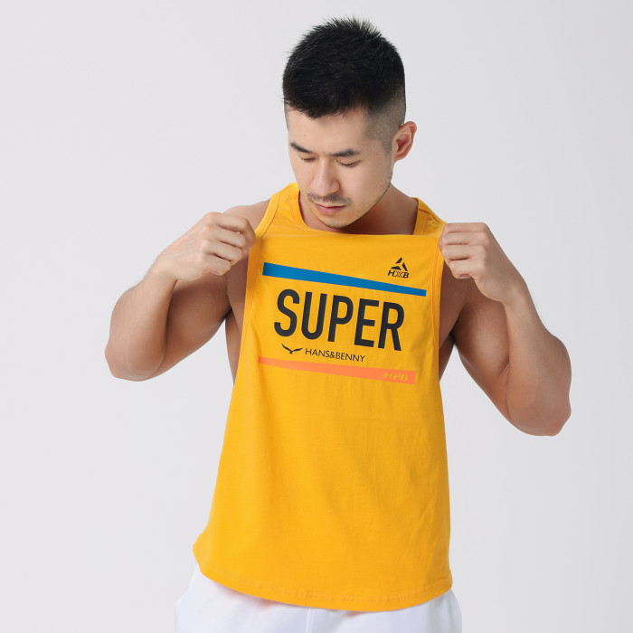 hansbenny夏季新款男士運動背心健身休閒個性無袖坎肩潮全棉背心