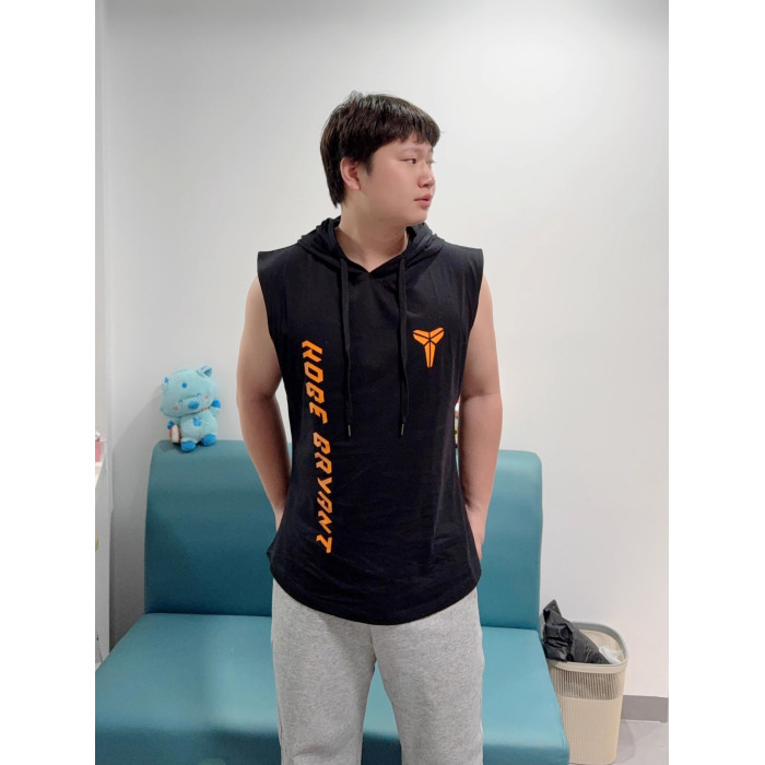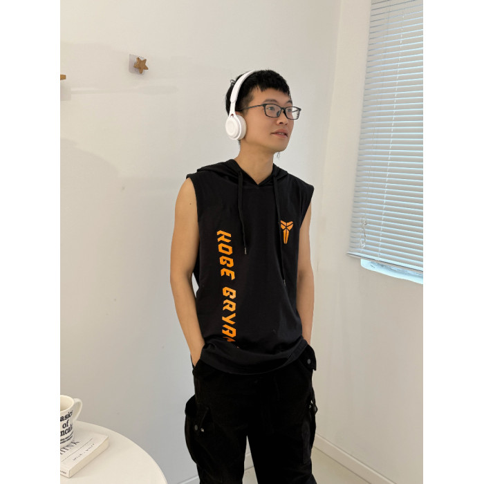 黑色【科比小標+名字 連帽背心】 橙色字