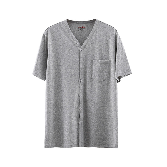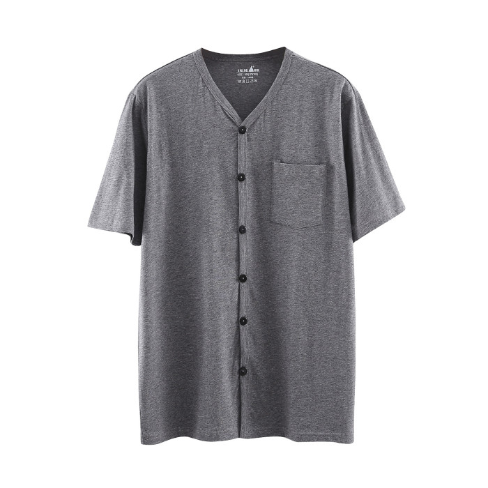 中老年開衫純棉短袖背心男大碼半袖T恤爸爸純棉夏季薄款開襟汗衫
