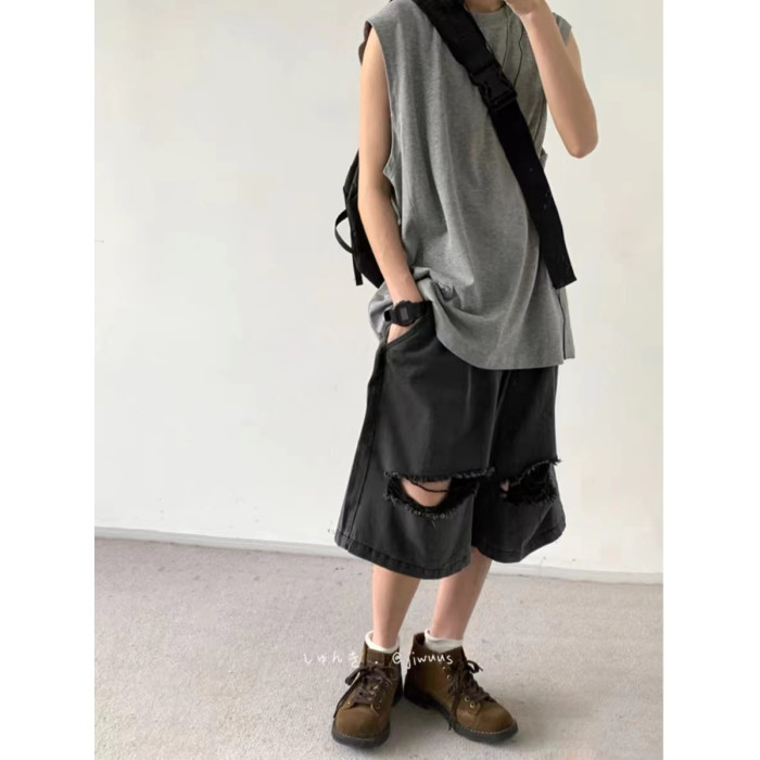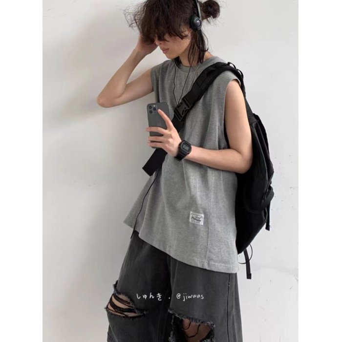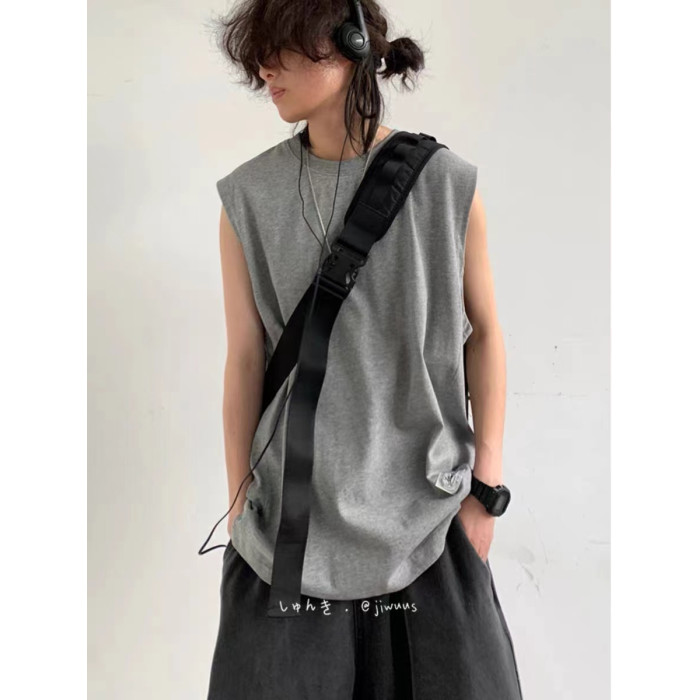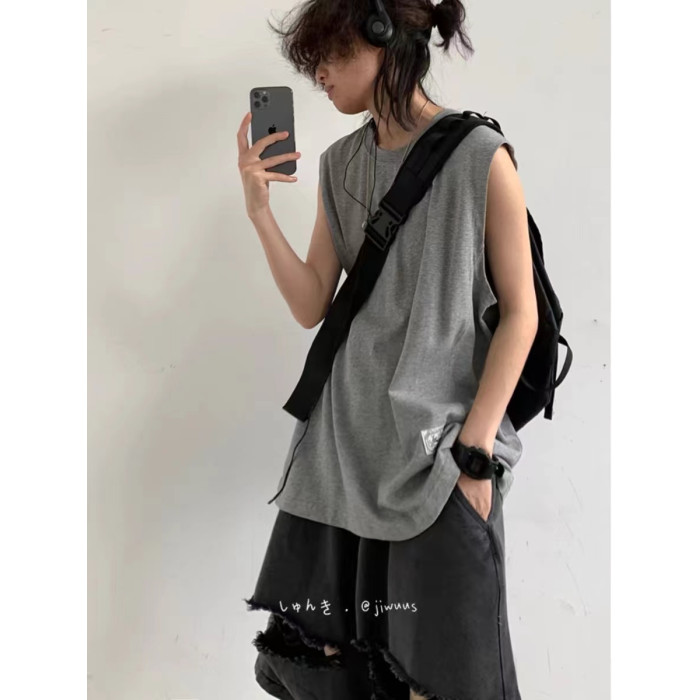 2025夏天日系復古基礎款背心男女生寬松純色百搭運動無袖打底汗衫