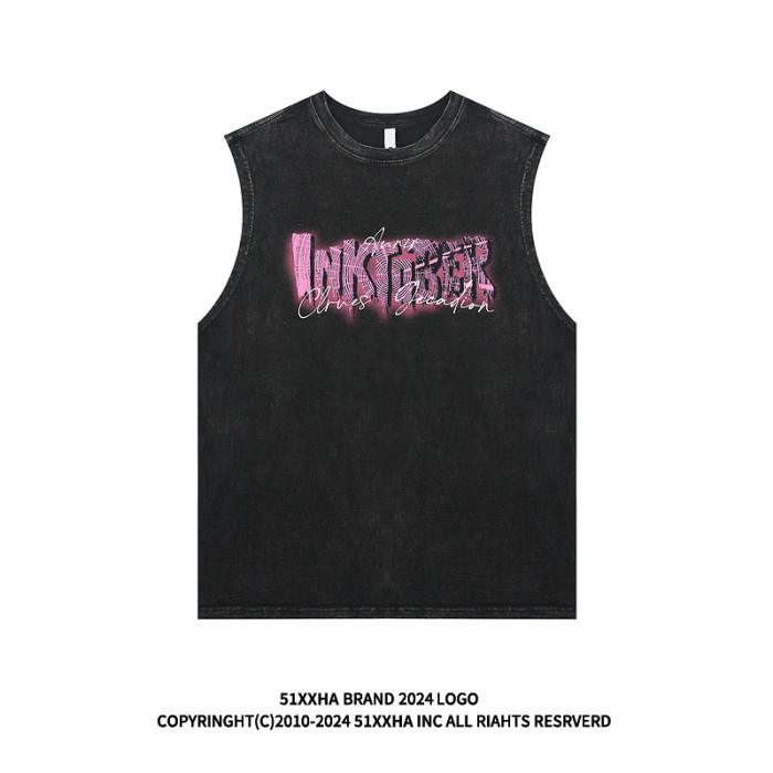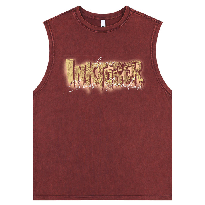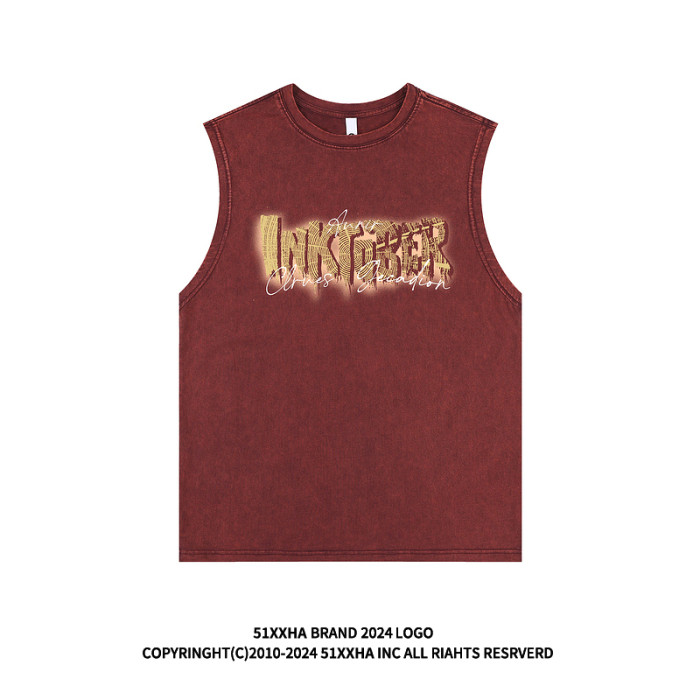 51嘻哈潮牌復古廢土風重磅水洗背心男美式街頭hiphop寬松無袖坎肩
