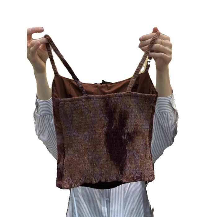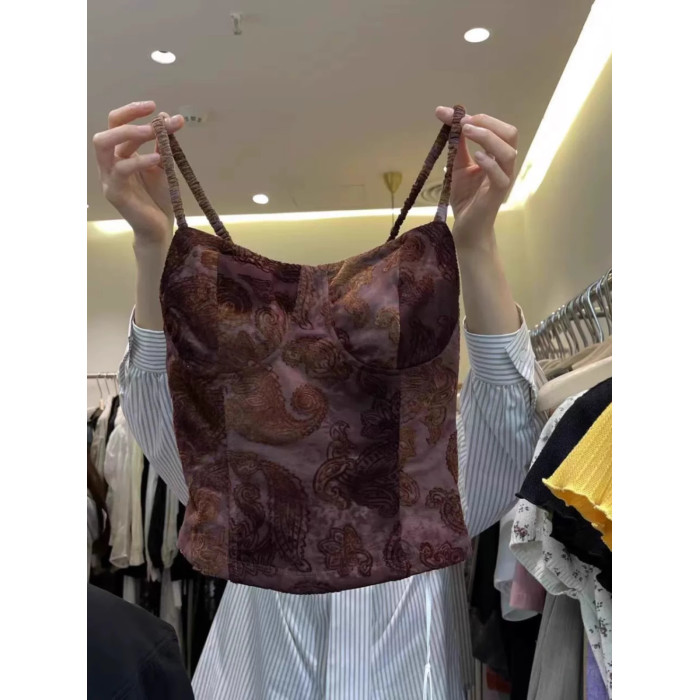 一慄莎子~設計感植絨辣妹修身吊帶小背心女夏季自帶胸墊無袖上衣