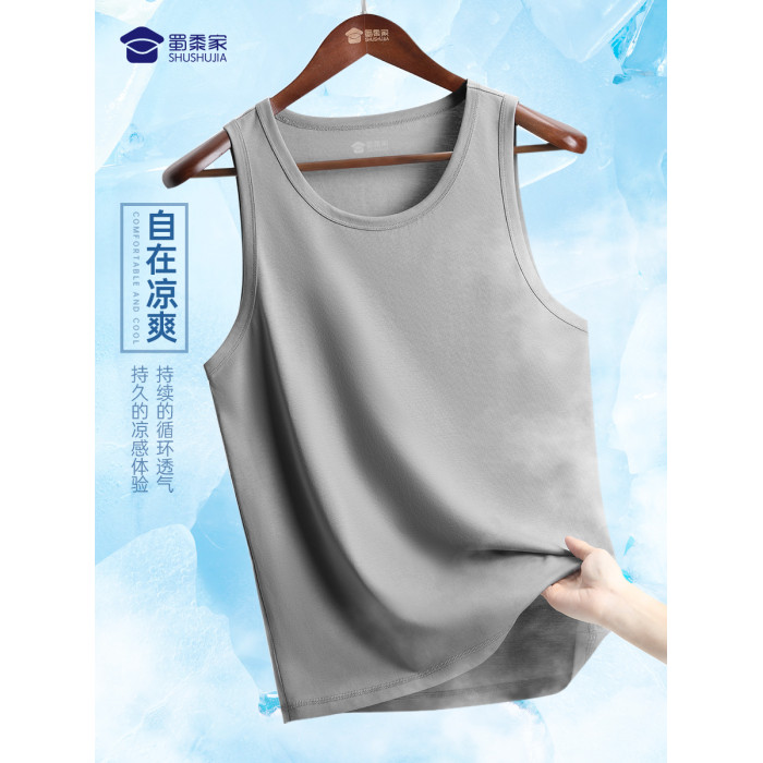 蜀黍家冰氧吧棉背心男冰絲2025新款夏季透氣跑步健身運動內搭坎肩