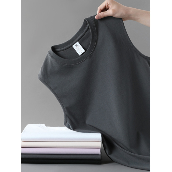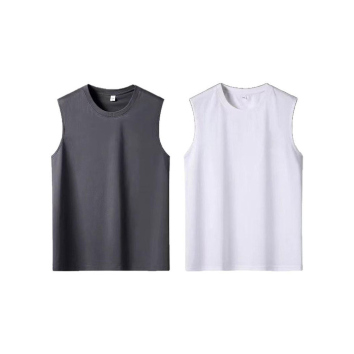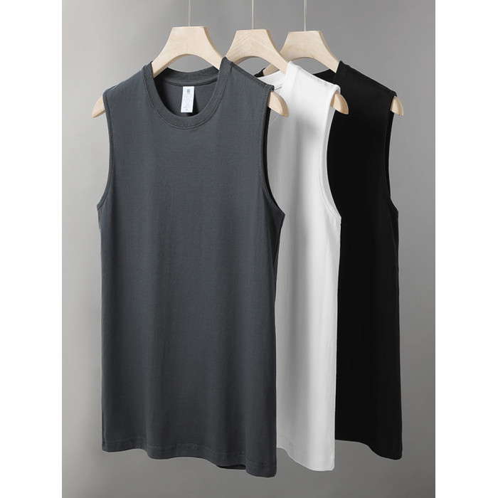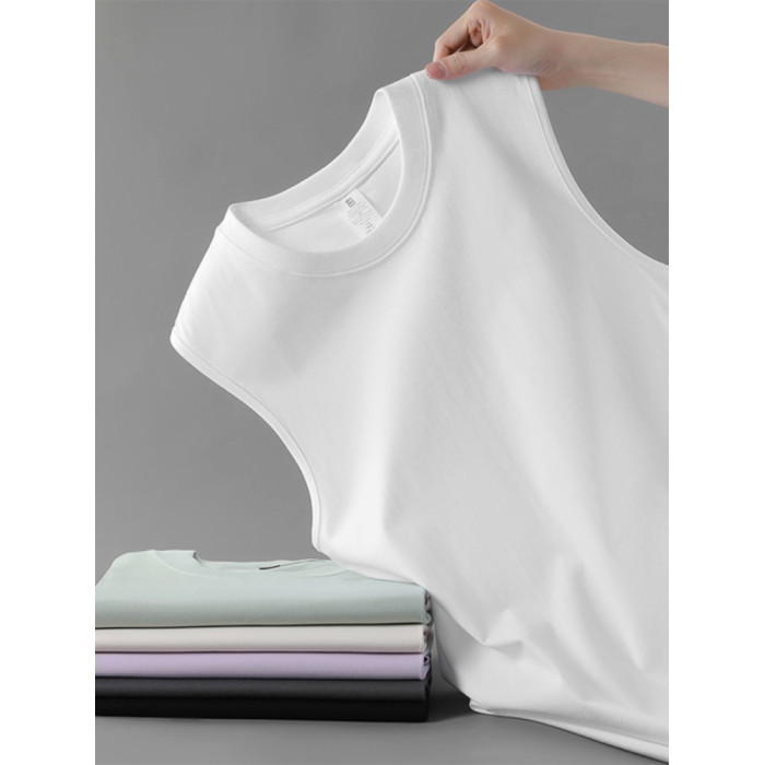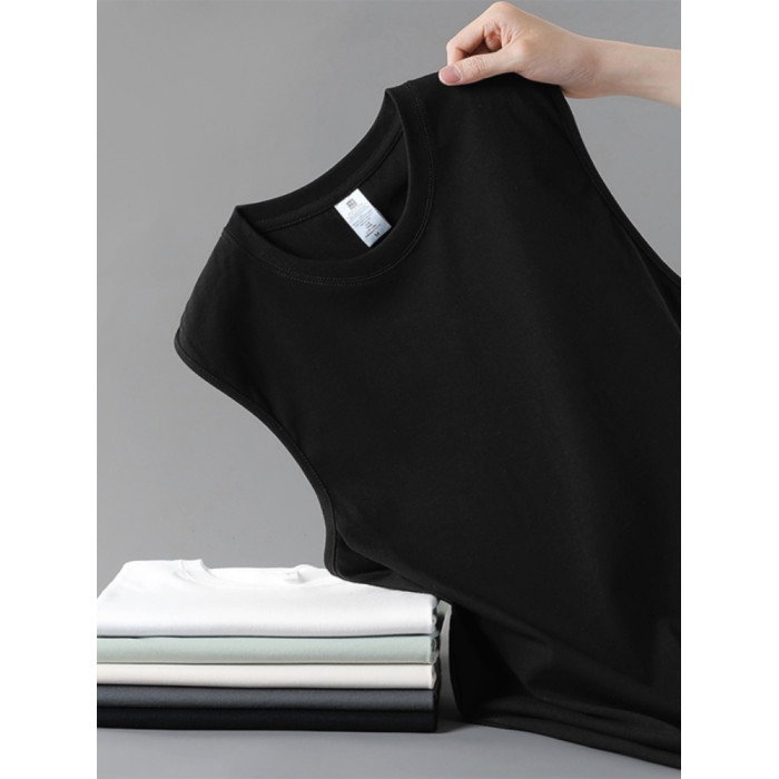 高級純棉白色圓領T恤無袖背心男士2025新款透氣運動健身坎肩男款